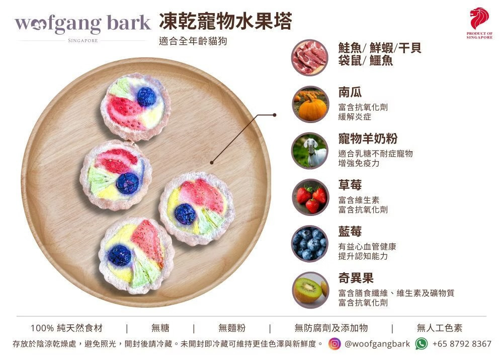 - 品名:Woofgang Bark 凍乾寵物水果塔(老虎蝦、鱷魚、鮭魚、袋鼠)